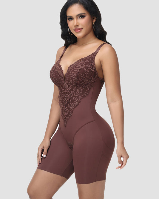 Shapshe® Lace Plunge Backless Bodysuit Shapewear