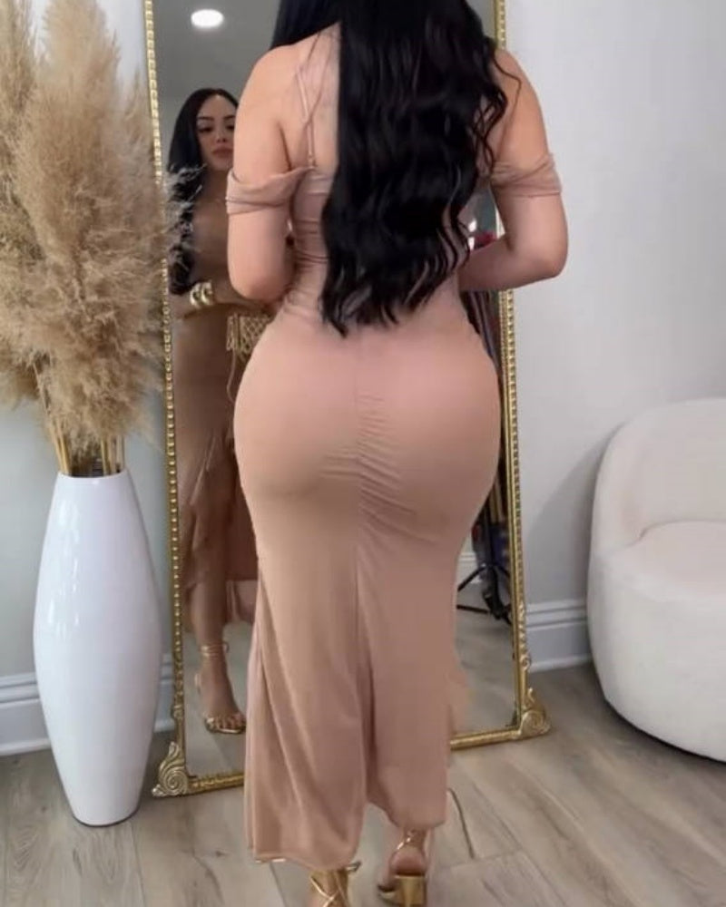 It Features: • Off-the-shoulder design: Showcases the elegant collarbone and adds a touch of sexiness • Ruffle design: Adds a feminine touch, exudes elegance, and exudes alluring charm • Asymmetrical high slit: Creates a bold and fashionable look, flattering the legs • Slim fit: Shows off your figure, contours your curves, and accentuates your feminine charm • Premium fabric: Comfortable and skin-friendly, providing a comfortable and relaxed fit • Versatile: Whether for a dinner, a party, or a date, this piece will exude your alluring style